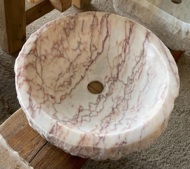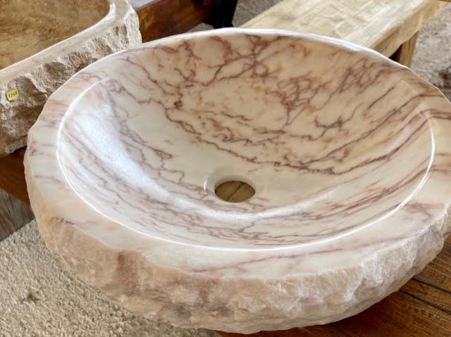 Lavabo redondo de mármol rosa